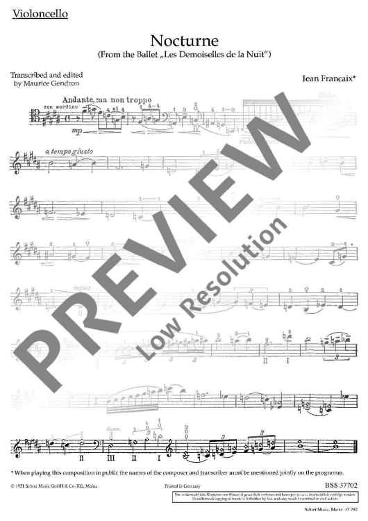 Digital Sheet Music for Nocturne by Jean Françaix, Maurice Gendron scored for Cello And Piano; id:471519