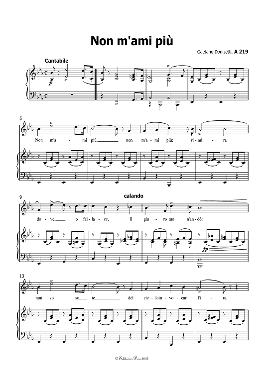 "Non m'ami piu" A 219, in Eb Major by Gaetano Donizetti