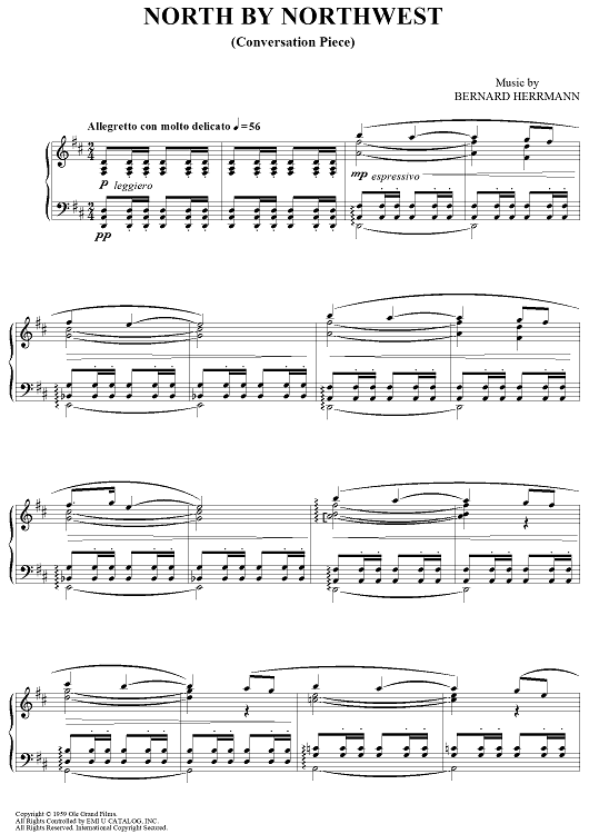 Digital Sheet Music for North By Northwest (Conversation Piece) by Bernard Herrmann scored for Piano Solo; id:456381