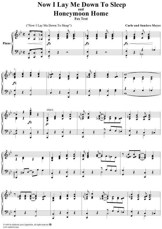Digital Sheet Music for Now I Lay Me Down To Sleep/Honeymoon Home (Fox Trot) by Carlo Meyer, Sanders Meyer scored for Piano/Vocal; id:251924