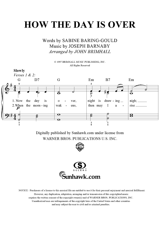 Digital Sheet Music for Now the Day is Over by Sabine Baring-Gould, Joseph Barnaby, John Brimhall scored for Easy Piano/Vocal; id:275896