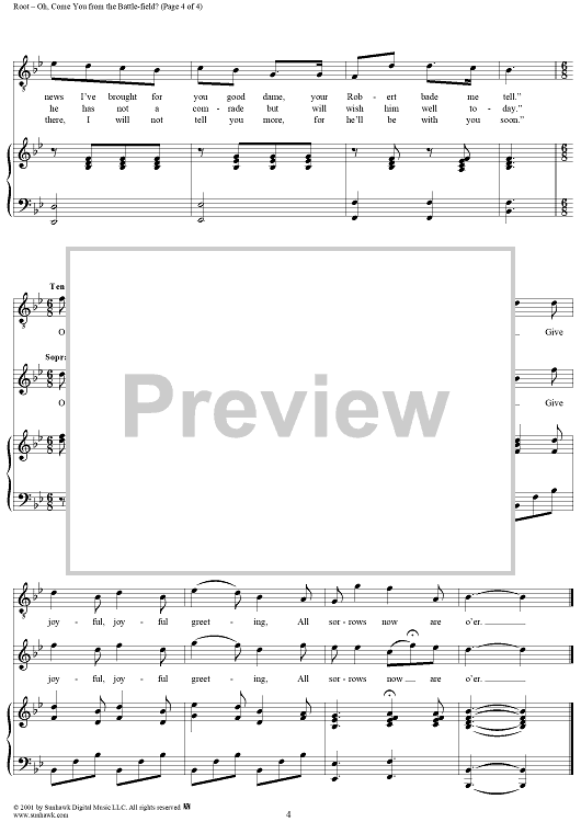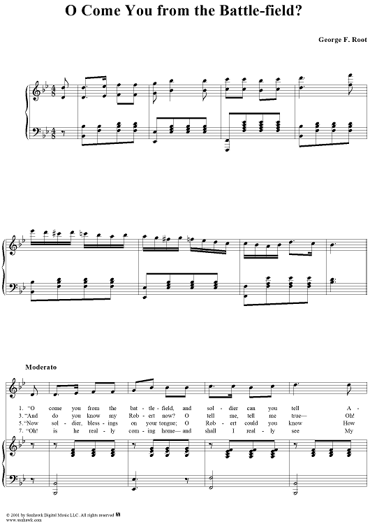 Digital Sheet Music for O Come To You from the Battle-field? by George F. Root scored for Piano/Vocal; id:252609