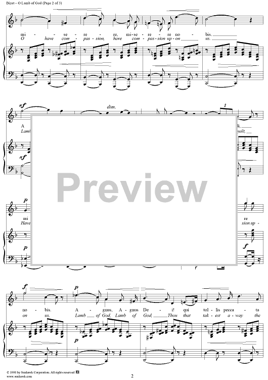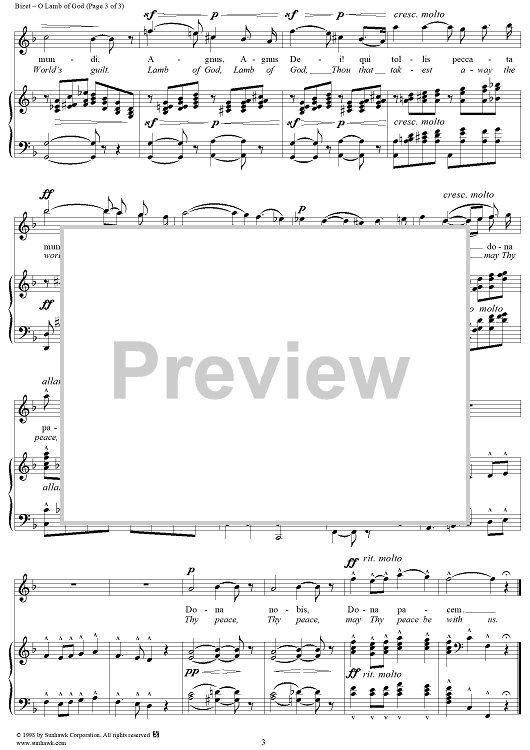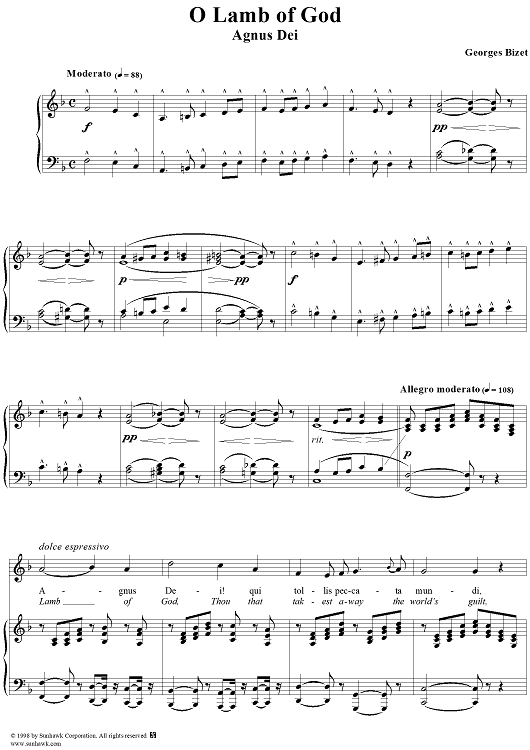 Digital Sheet Music for O Lamb Of God (Agnus Dei) by Georges Bizet scored for Voice/Piano; id:265571