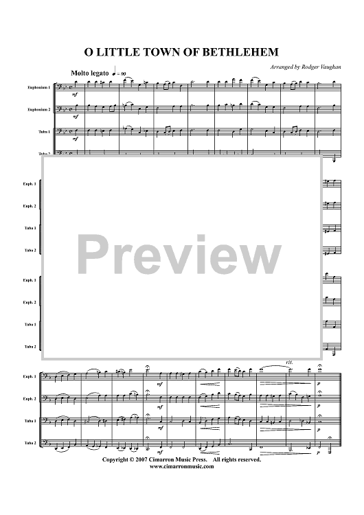Digital Sheet Music for O Little Town of Bethlehem, - Score by Rodger Vaughan, Traditional scored for Tuba Quartet; id:413552