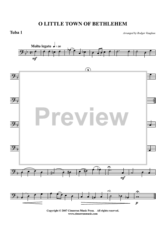 Digital Sheet Music for O Little Town of Bethlehem, - Tuba 1 by Rodger Vaughan, Traditional scored for Tuba Quartet; id:413555
