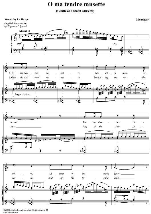 "O ma tendre musette - (Gentle and Sweet Musette)" Sheet Music by Pierre-Alexandre Monsigny