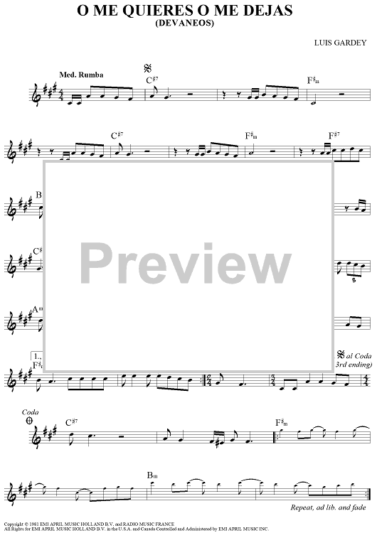 "O Me Quieres O Me Dejas (Devaneos)" Sheet Music by Luis Gardey