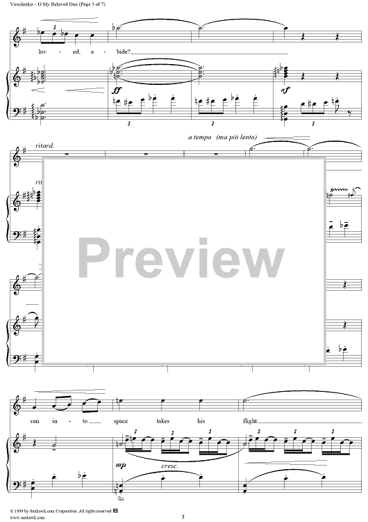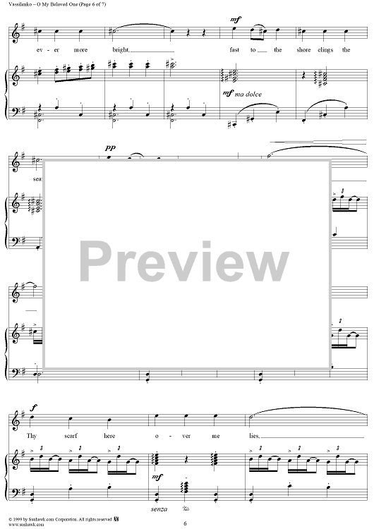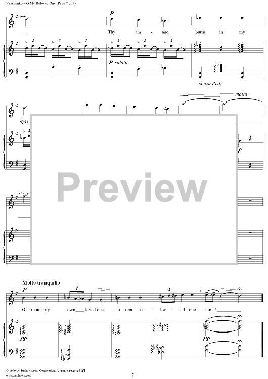 Digital Sheet Music for O My Beloved One - Op. 23, No. 4 by S. Vassilenko scored for Voice/Piano; id:254031
