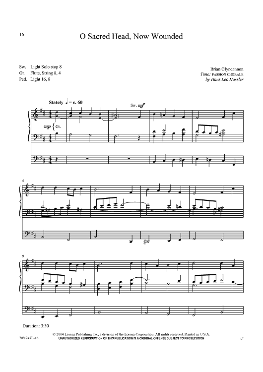 Digital Sheet Music for O Sacred Head, Now Wounded by Hans Leo Hassler, Brian Glyncannon scored for Organ Solo; id:437644