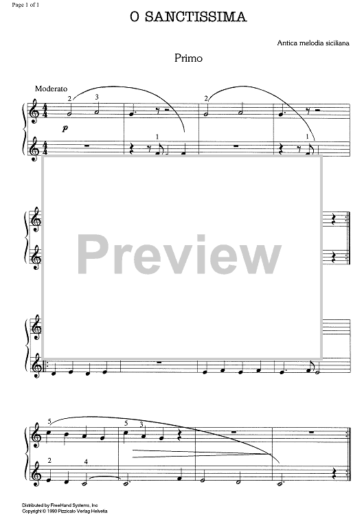 Digital Sheet Music for O sanctissima by Enrico Battistoni, Traditional scored for 1 Piano, 4 Hands; id:354427