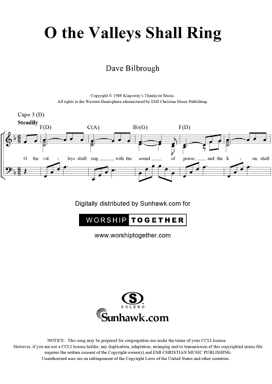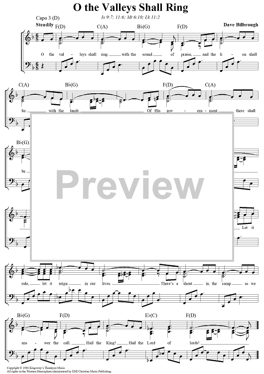 Digital Sheet Music for O the Valleys Shall Ring by Dave Bilbrough scored for Piano/Vocal/Chords; id:191432