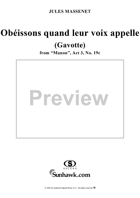 "Obeissons, Quand Leur Voix Apelle (Gavotte) - From Manon" Sheet Music by Jules Massenet