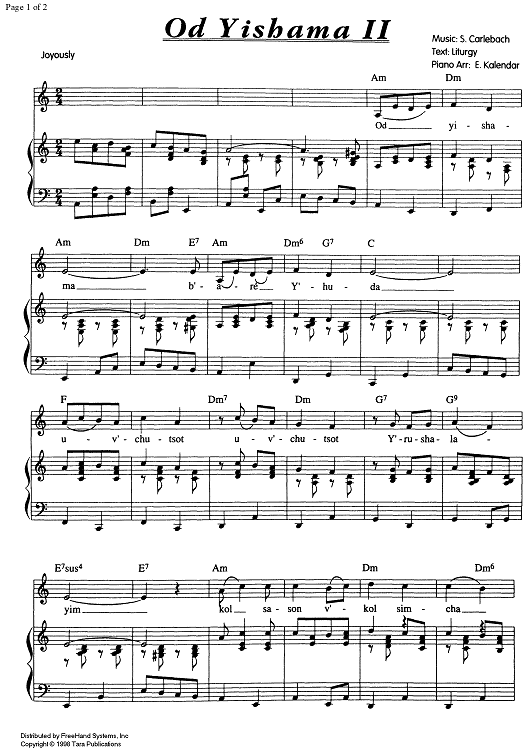 Digital Sheet Music for Od Yishama II by , S. Carlebach, Edward Kalendar scored for Voice/Piano; id:343849
