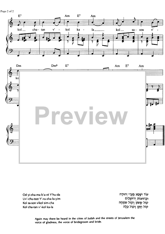 "Od Yishama II" Sheet Music by S. Carlebach