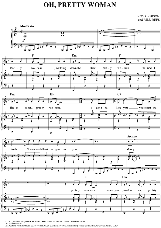"Oh, Pretty Woman" Sheet Music by Roy Orbison