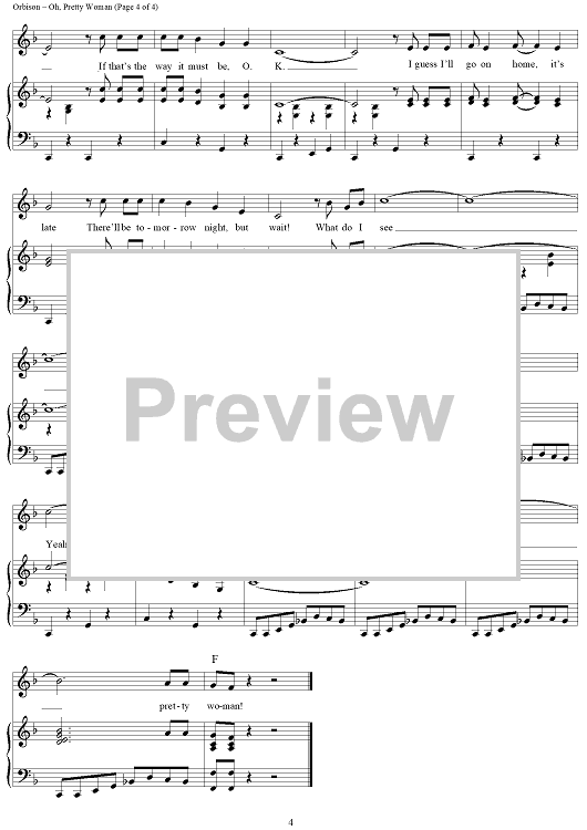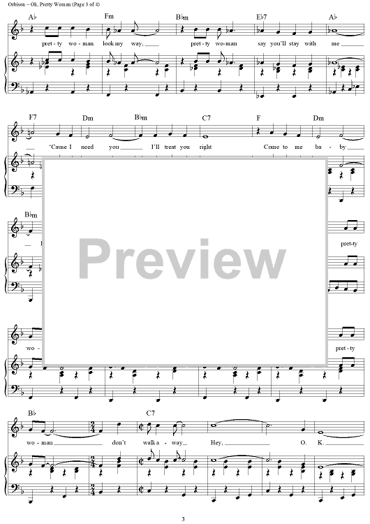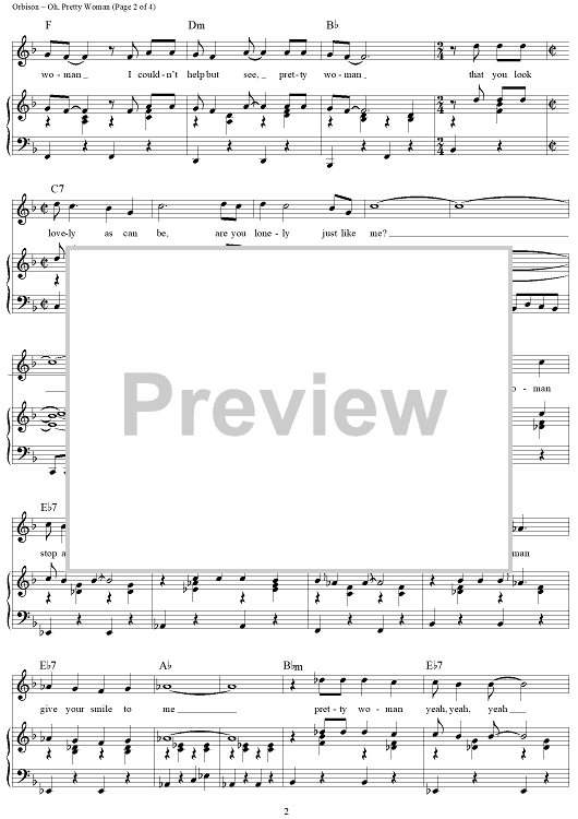 Digital Sheet Music for Oh, Pretty Woman by Roy Orbison, Bill Dees, Van Halen scored for Piano/Vocal/Chords; id:110290