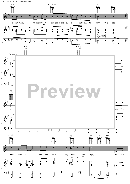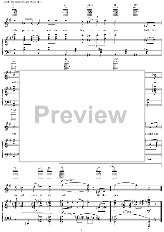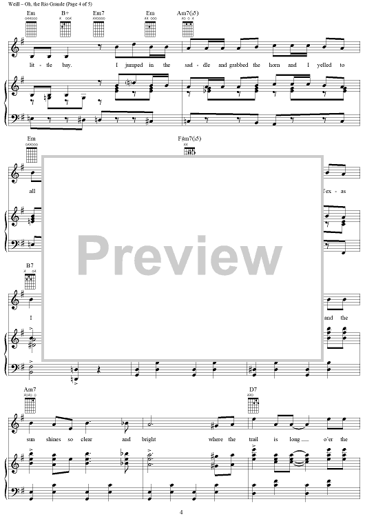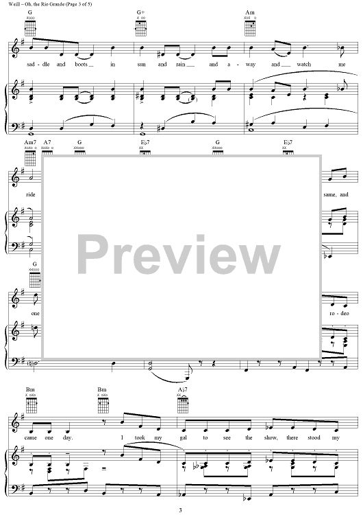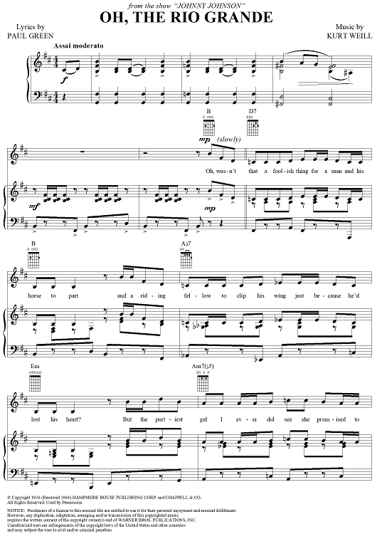Digital Sheet Music for Oh, the Rio Grande by Paul Green, Kurt Weill scored for Piano/Vocal; id:263560