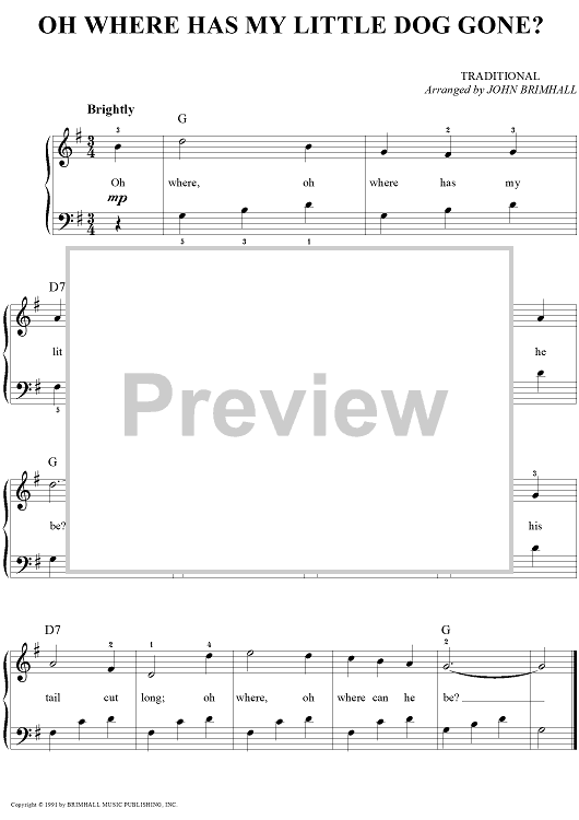 Digital Sheet Music for Oh Where Has My Little Dog Gone? by John Brimhall, Traditional scored for Easy Piano/Vocal; id:261750