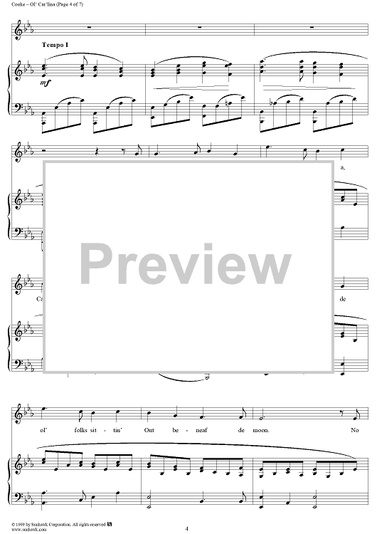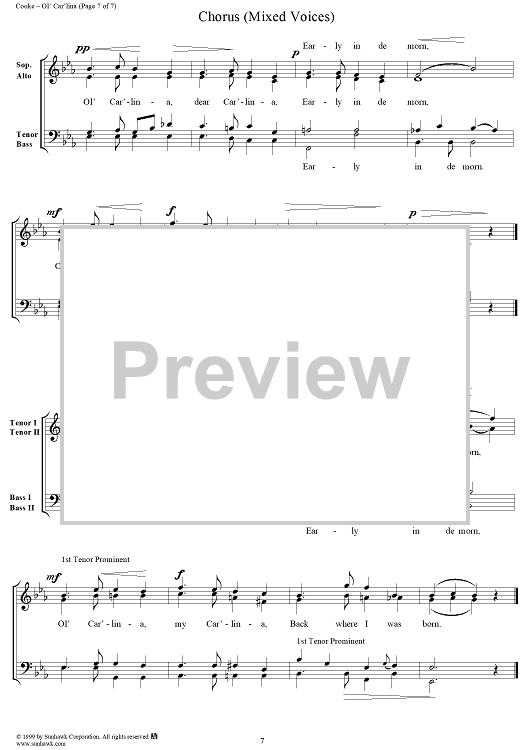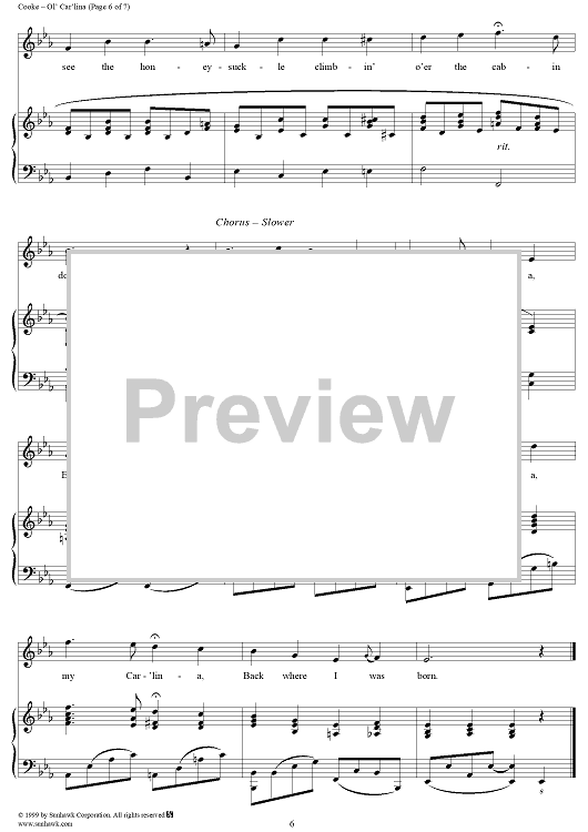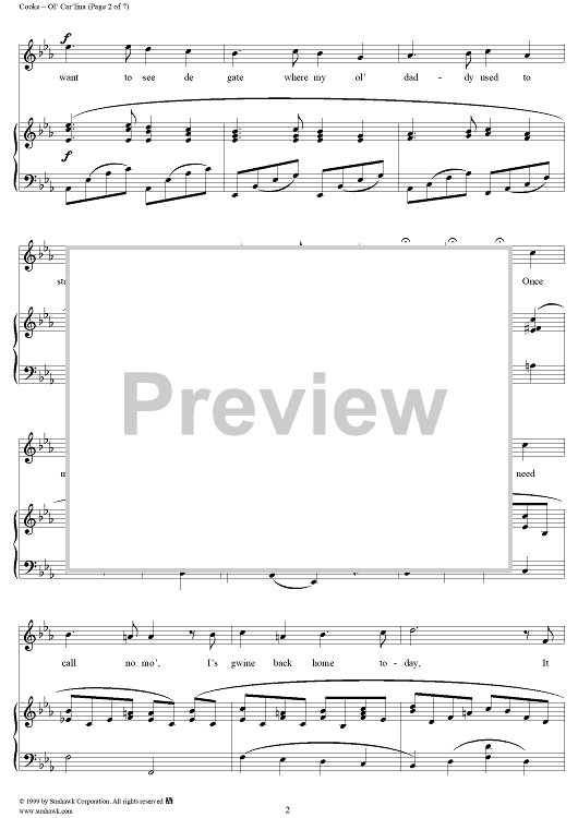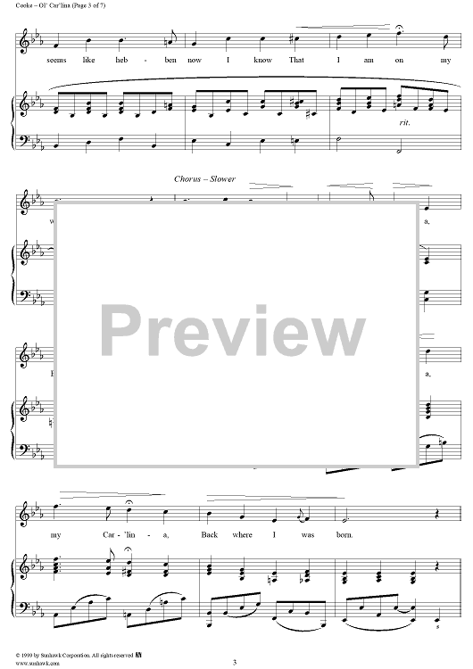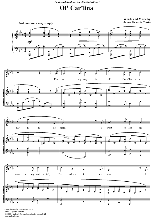 Digital Sheet Music for Ol' Car'lina by James Francis Cooke scored for Piano/Vocal; id:267480