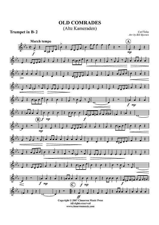 "Old Comrades (Alte Kameraden) - Trumpet 2 in B-flat" Sheet Music by Carl Teike