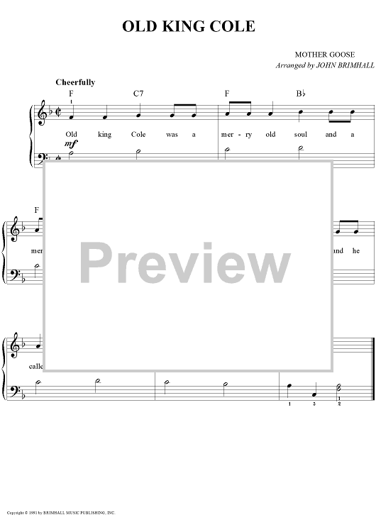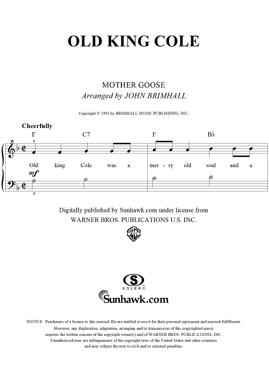 Digital Sheet Music for Old King Cole by John Brimhall, Mother Goose scored for Easy Piano/Vocal; id:252447