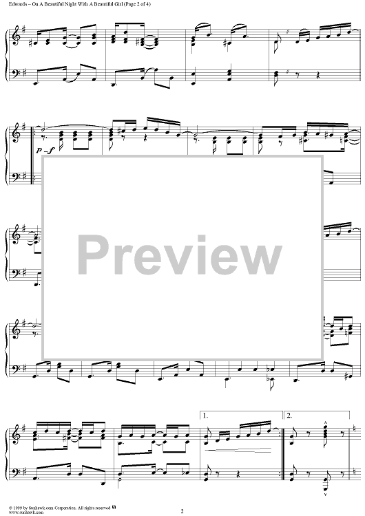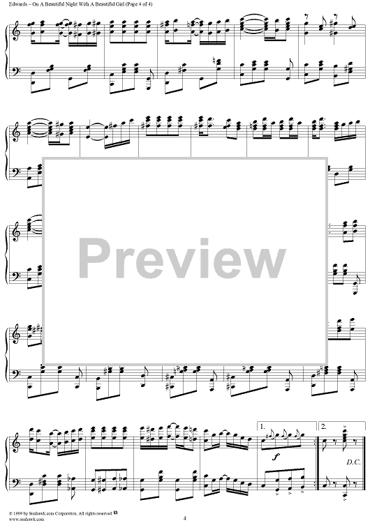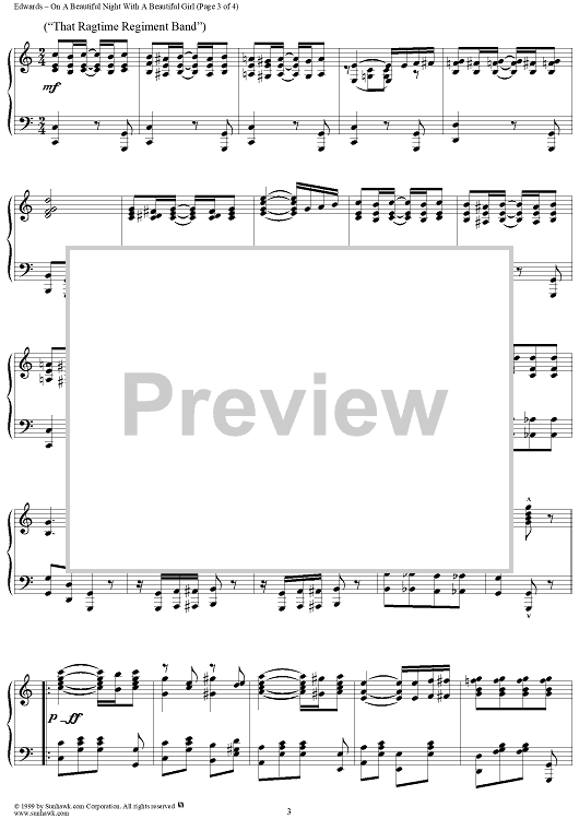 Digital Sheet Music for On A beautiful Night With A Beautiful Girl / That Ragtime Regimet Band medley (Tango Argentino) by Gus Edwards scored for Piano/Vocal; id:270835