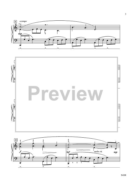 A delightful piano solo in 12/8 meter, this piece has contrasting accompaniments in the left hand. Long melodic phrases and lush, flowing harmonies provide the spirit of a nocturne.