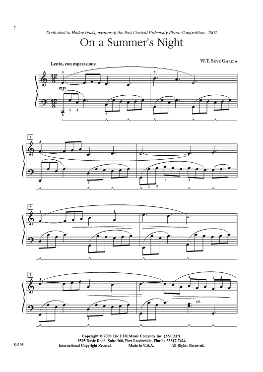 "On a Summer's Night" Sheet Music by W. T. Skye Garcia