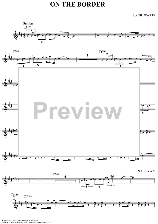 Digital Sheet Music for On The Border by Ernie Watts scored for Lead Sheet; id:456454