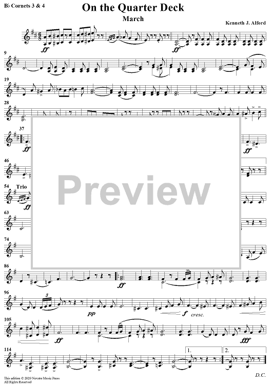 Digital Sheet Music for On the Quarter Deck - Cornets 3 & 4 by Kenneth J. Alford scored for Concert Band; id:281147