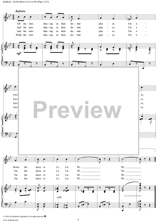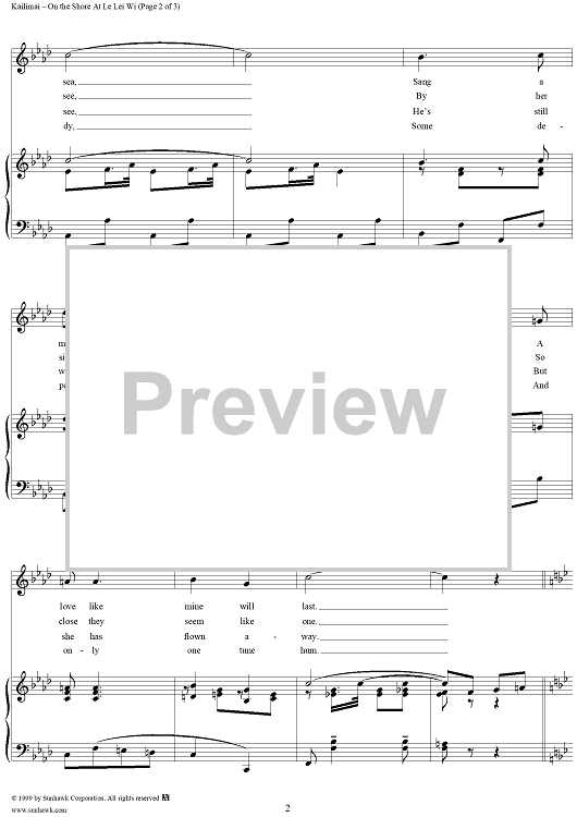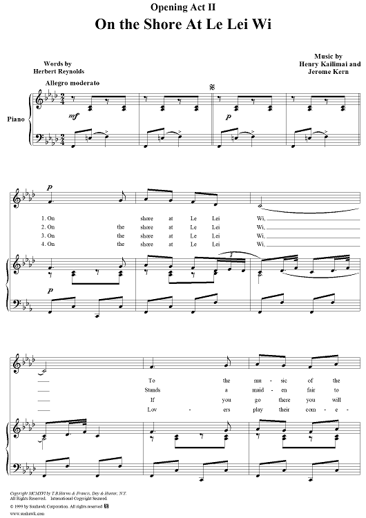 Digital Sheet Music for On the Shore at Le Lei Wi by Herbert Reynolds, Henry Kailimae scored for Piano/Vocal; id:249820