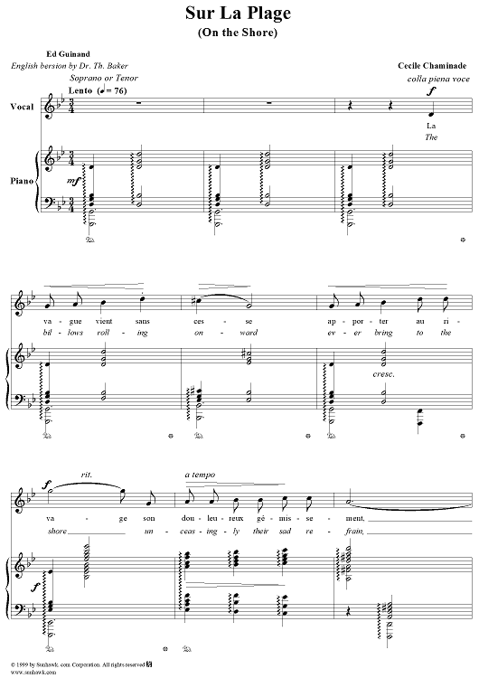 Digital Sheet Music for On the Shore (Sur La Plage) by Cécile Chaminade, Ed. Guinand scored for Voice/Piano; id:273263