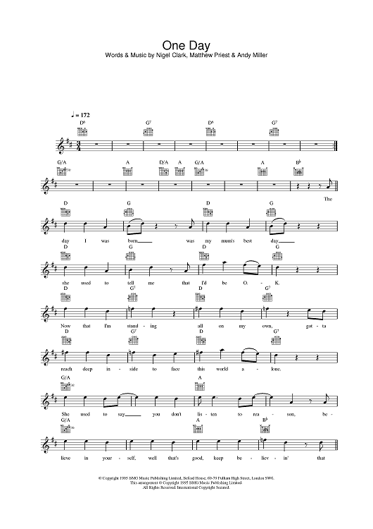 Digital Sheet Music for One Day by Nigel Clark, Dodgy, Andy Miller, Mathew Priest scored for Lead Sheet; id:377298