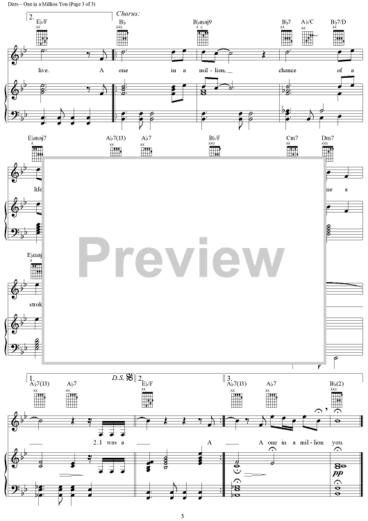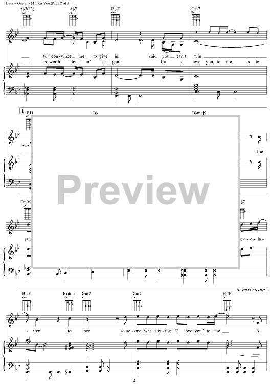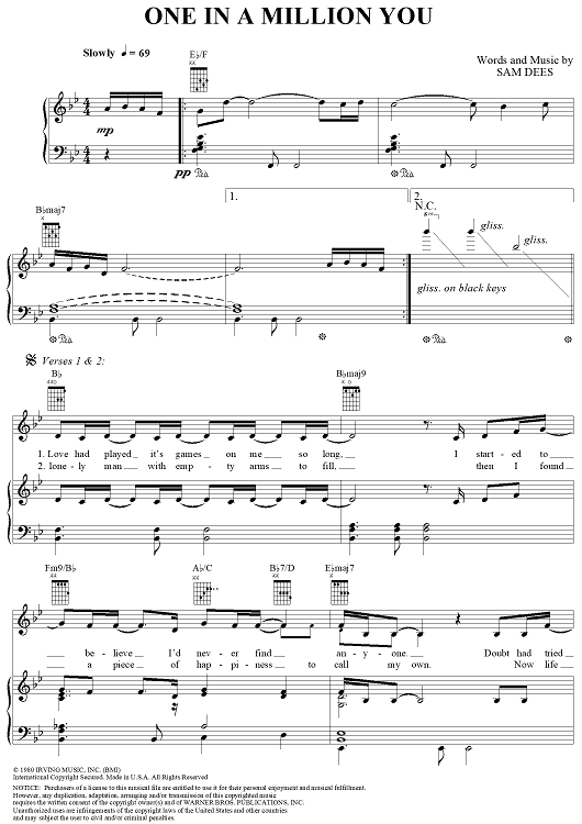 Digital Sheet Music for One In A Million You by Larry Graham, Sam Dees scored for Piano/Vocal/Chords; id:271500