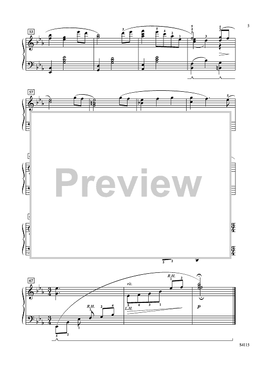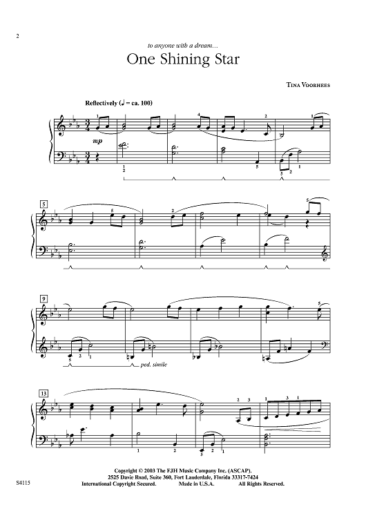 This lovely, very expressive piece for late intermediate students includes a wide range of dynamic contrast and rubato while featuring a right-hand singing melody and legato pedaling.