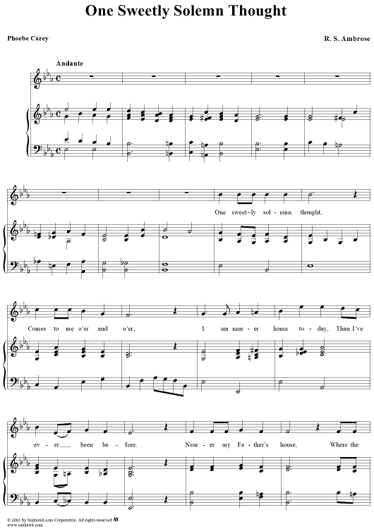 Digital Sheet Music for One Sweetly Solemn Thought by R. S. Ambrose, Phoebe Carey scored for Piano/Vocal; id:265609