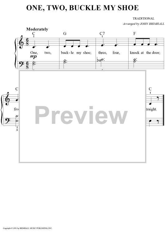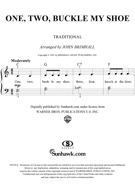 Digital Sheet Music for One, Two, Buckle My Shoe by John Brimhall, Traditional scored for Easy Piano/Vocal; id:261058