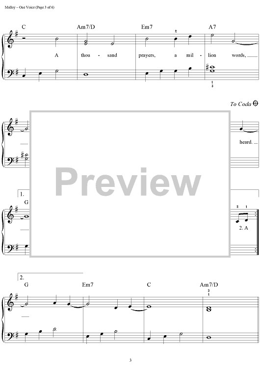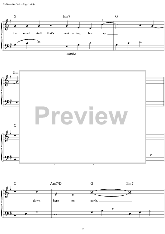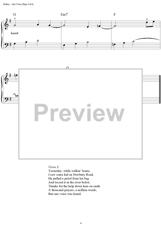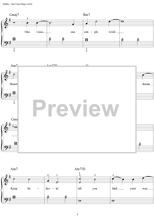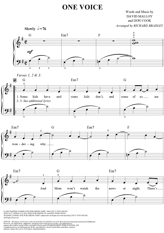 Digital Sheet Music for One Voice by Richard Bradley, David Malloy, Don Cook, Billy Gilman scored for Easy Piano/Vocal; id:284514