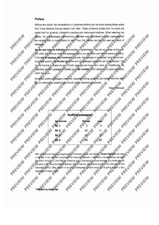 Die Sammlung richtet sich nicht nur an Studierende und Orchestermusiker/innen, sondern auch an Violalehrer/innen. Roland Bierwald hat bei der Auswahl nicht nur auf Passagen mit technischen Schwierigkeiten, sondern auch auf musikalisch wichtige Stellen Wert gelegt. Somit sind seine Orchesterstudien auch ein Nachschlagewerk.