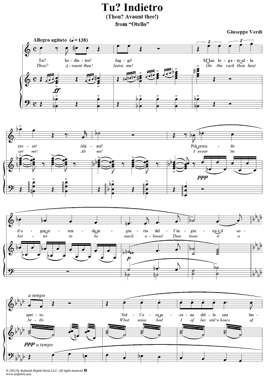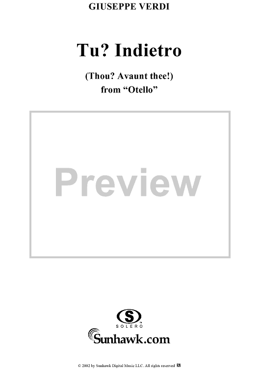 Digital Sheet Music for Otello, Act 2, No. 10b: "Tu? Indietro!" (Thou? Avant thee) by Giuseppe Verdi scored for Voice/Piano; id:253719