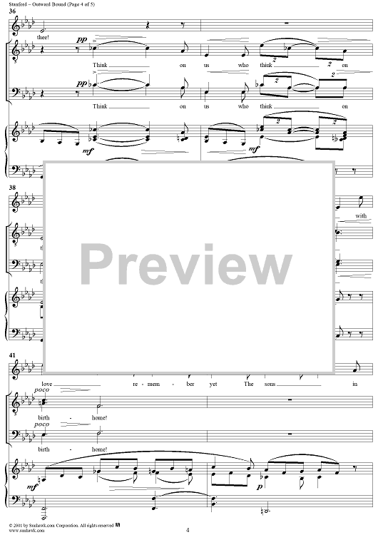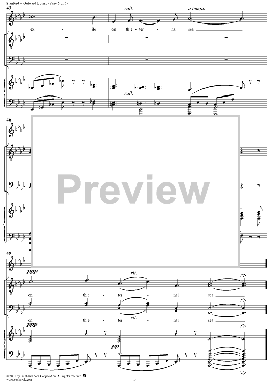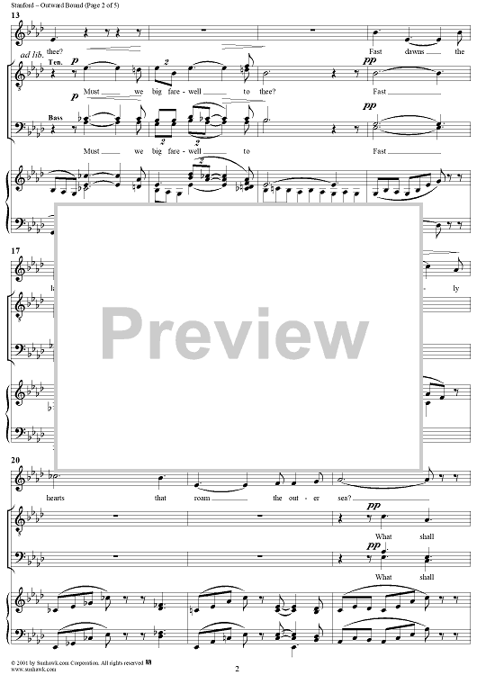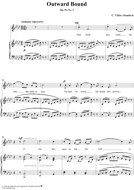 Digital Sheet Music for Outward Bound, Op. 91, No. 2 by Charles Villiers Stanford scored for Voice/Piano; id:272000