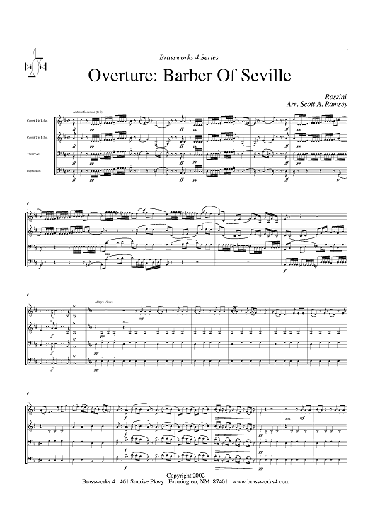Digital Sheet Music for Overture: Barber of Seville - Score by Gioachino Rossini, Scott A. Ramsey scored for Brass Quartet; id:316483