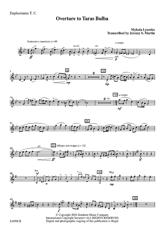 Digital Sheet Music for Overture to Taras Bulba - Euphonium TC by Jeremy S. Martin, Mykola Lysenko scored for Concert Band; id:504353