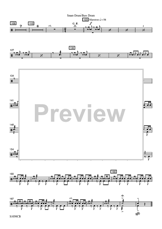Digital Sheet Music for Overture to Taras Bulba - Snare Drum & Bass Drum by Jeremy S. Martin, Mykola Lysenko scored for Concert Band; id:504360