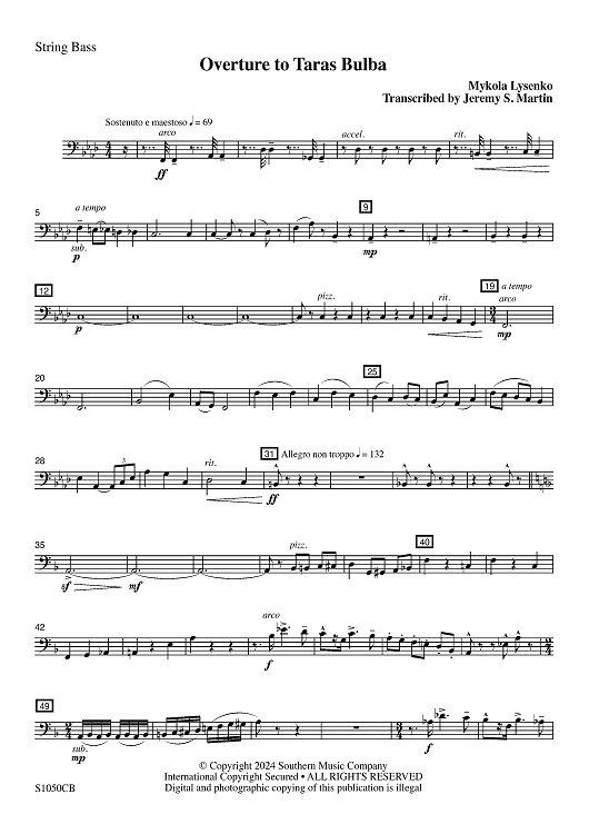 Digital Sheet Music for Overture to Taras Bulba - String Bass by Jeremy S. Martin, Mykola Lysenko scored for Concert Band; id:504356