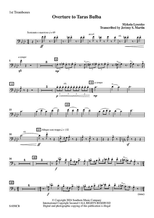 Digital Sheet Music for Overture to Taras Bulba - Trombone 1 by Jeremy S. Martin, Mykola Lysenko scored for Concert Band; id:504350