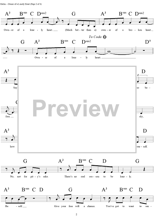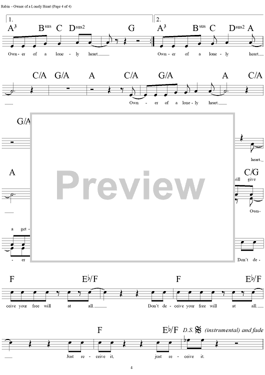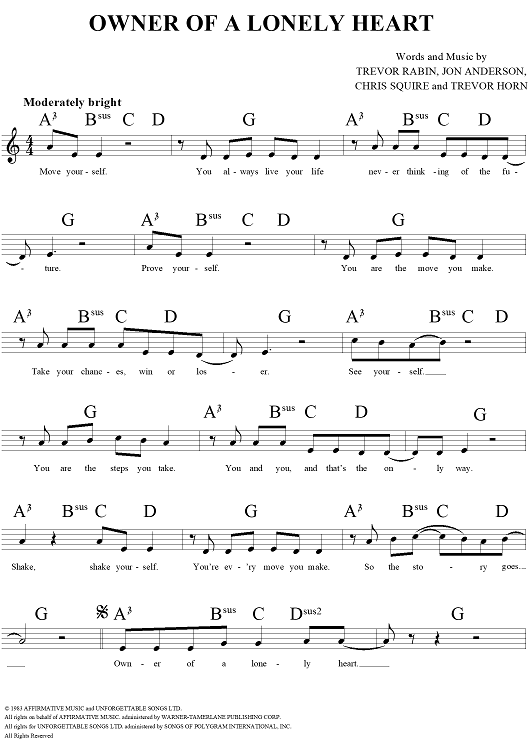Digital Sheet Music for Owner of a Lonely Heart by Yes, Jon Anderson, Chris Squire, Trevor Rabin, Trevor Horn scored for Lead Sheet; id:255168