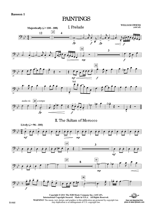 Digital Sheet Music for Paintings - Bassoon 1 by William Owens scored for Concert Band; id:425590