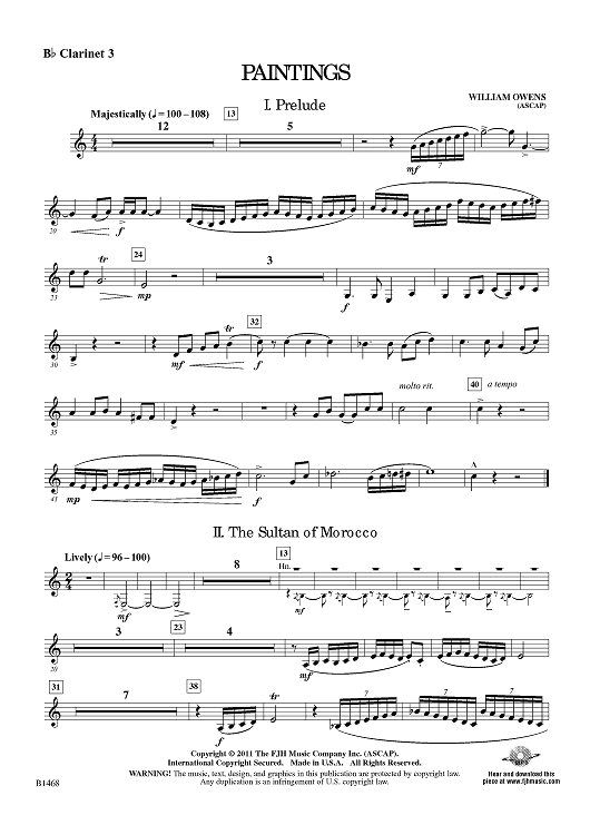 "Paintings - Bb Clarinet 3" Sheet Music by William Owens