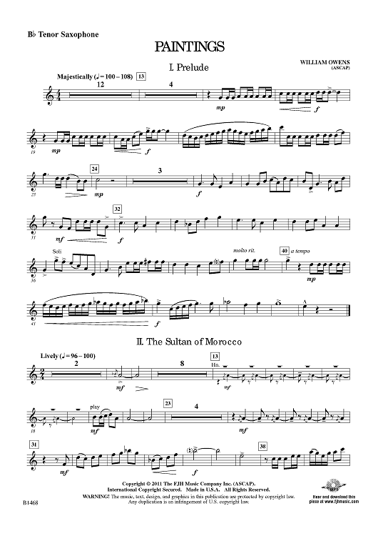 "Paintings - Bb Tenor Sax" Sheet Music by William Owens
